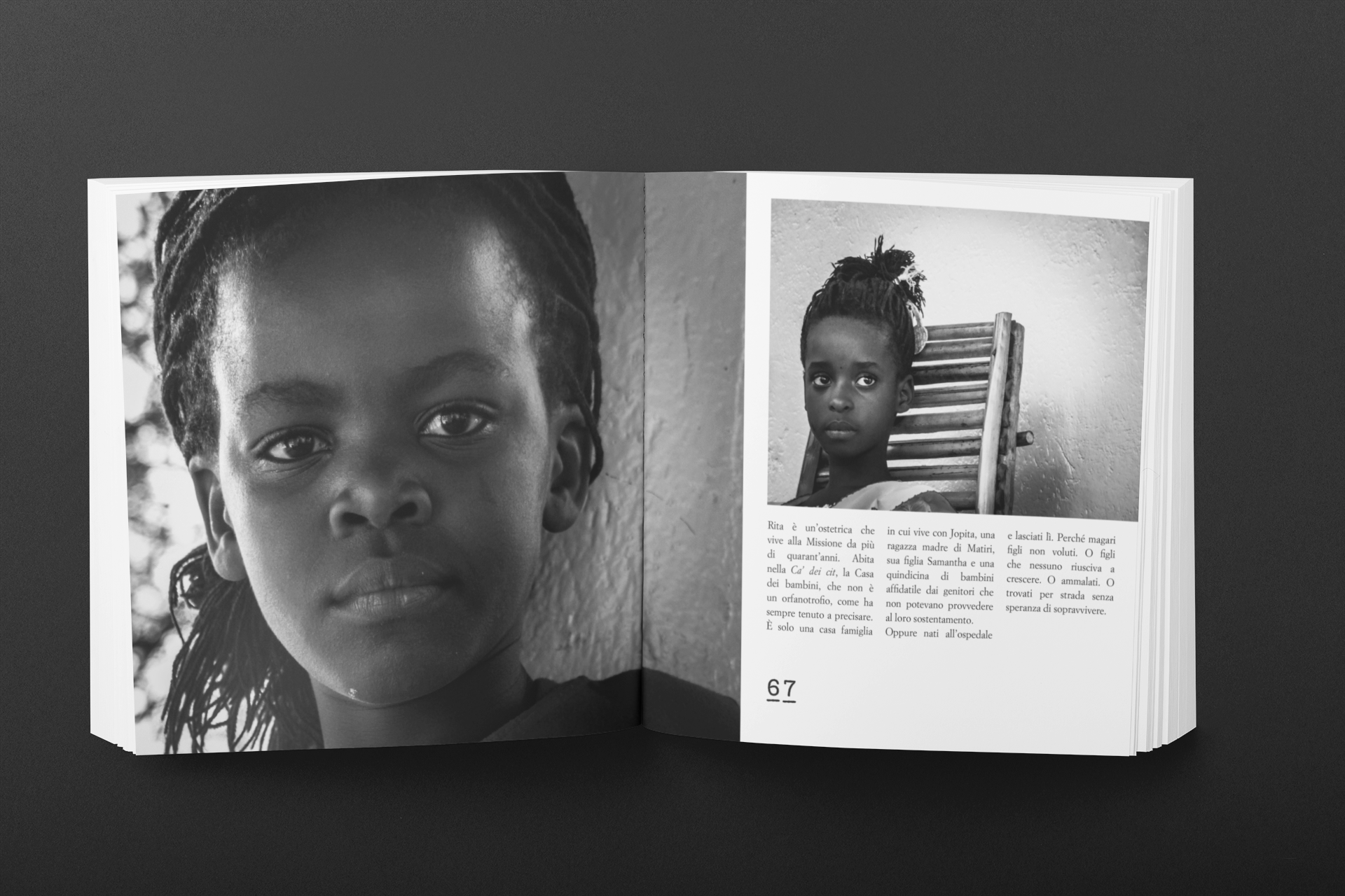 Vite è un reportage fotografico, il racconto per immagini in bianco e nero di due anni vissuti in Kenya, nell’arida regione del Tharaka, in un villaggio chiamato Matiri, all’Ospedale missionario St. Orsola.